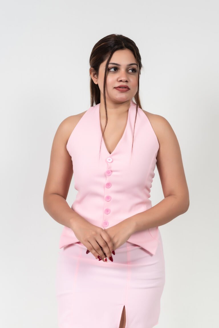 Cotton Candy Co-ord Set ( Halter top with pleated skirt set in pastel pink )