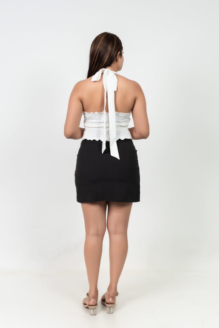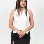 Ivory Boss Vest Set ( White tailored halter vest with black skirt chic )